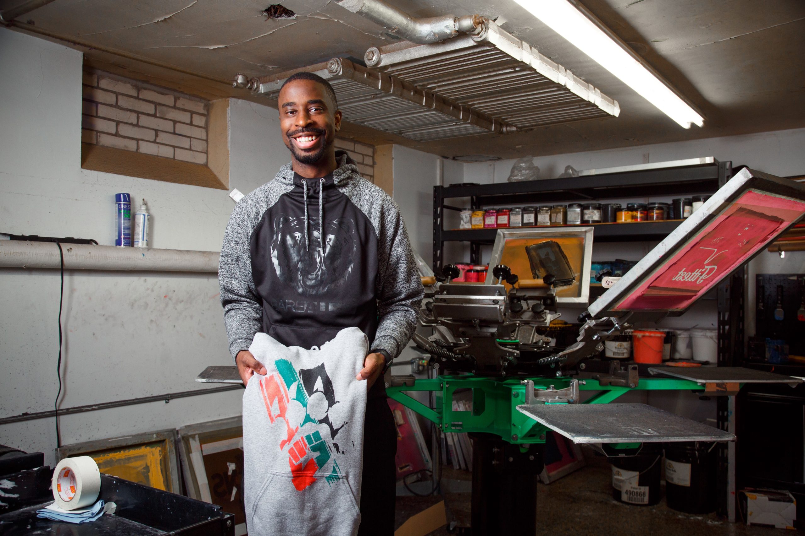 According to Jovan Naves, owner of Bare All LLC, receiving a Grand Rapids Area Black Businesses (GRABB) Relief and Resilience grant not only kept the local business afloat but allowed them to purchase new equipment. Originating as a clothing line in Detroit, Bare All has expanded to operate its own screen-print plant since moving to Grand Rapids, Naves’ hometown. The plant not only prints original silk screen designs on the Bare All clothing line but has done apparel printing for a wide range of commercial clients including Mary Free Bed Rehabilitation Hospital, Grand Rapids Public Schools and the Grand Rapids Police Department.