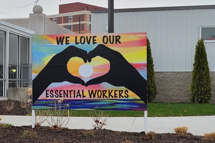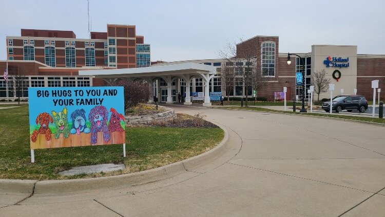 Artist Carolyn Stich wanted to show her appreciation for local frontline workers. She created large signs with inspiring messages that have been installed at Holland Hospital.