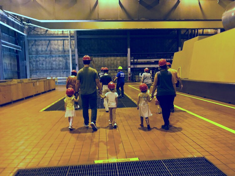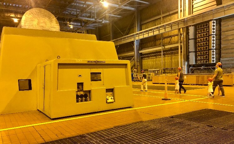 Hoffman and Kapla also led guests inside to a fourth-floor turbine viewing platform in Unit 3 where the noise — despite mandatory ear protection — was ear-splitting and the temperature was about 100 degrees.