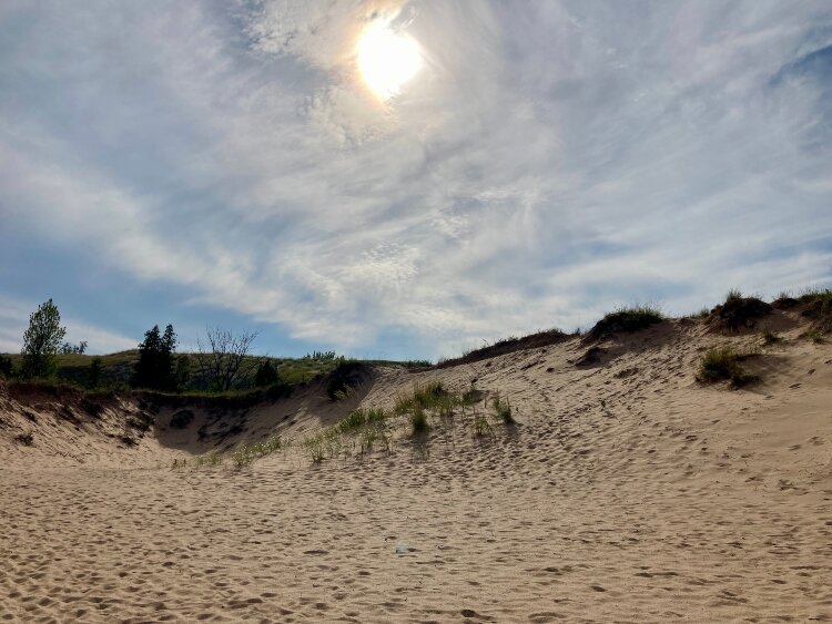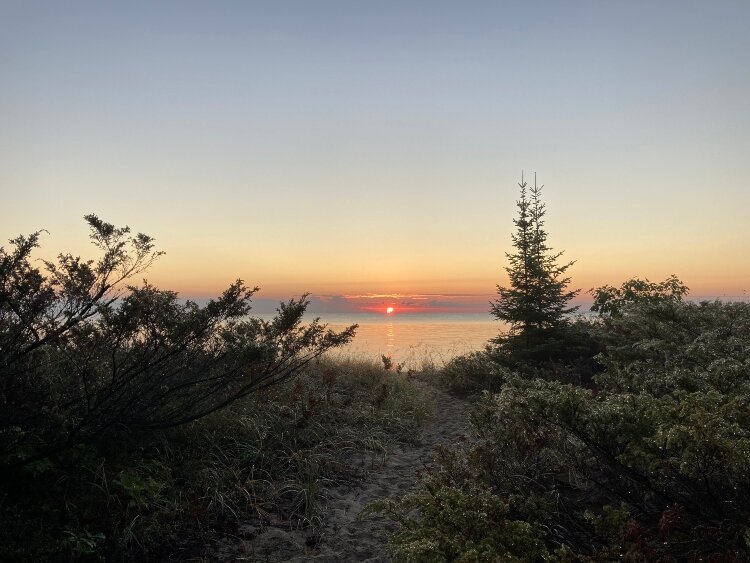 Onward. North to the beatific/painful/maddening hills of M-22. North to stunning Sleeping Bear Dunes, the woods of the Heritage Trail giving way to sand mountains. North to the sunflower fields on the Leelanau Trail. North to the boat to take me to Beaver Island.