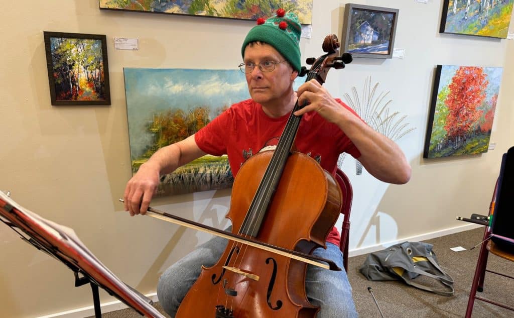 Cellist and gallery owner Carrie Rodgers-O’Neal performs with Community Strings and hosts concerts at her downtown Holland gallery, Lake Effect Gallery, connecting the visual and performing arts.