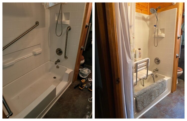 The changes included a new keyless door handle and cutting the side of his bathtub so he could step out of it without causing pain to his stiff knees and legs. A new bathroom faucet and a taller toilet means his 6-foot-2 frame doesn’t have to bend as low to use them.