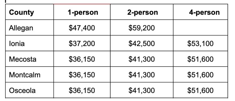 The 2022 annual median household income figures in the target counties are as follows: