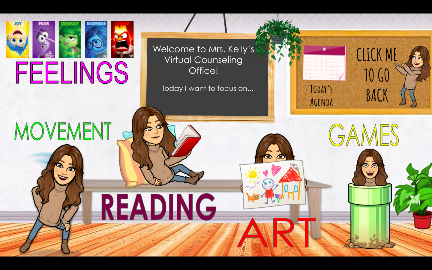 In addition to video and audio calls, FMC’s therapists engage students via virtual office settings where kids can click on a variety of activities, games, and mindfulness techniques to complement their therapy sessions.