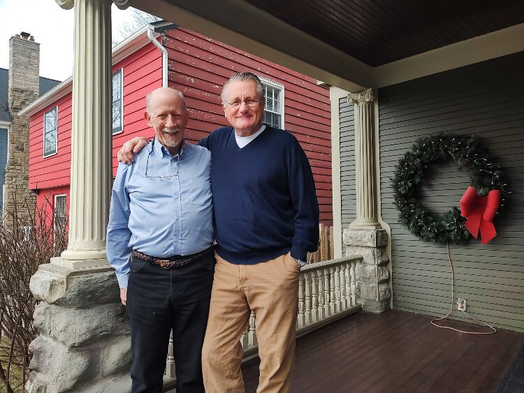 John Shea (left) and Jay Peters posed for a photo this week after Peters used CPR to save Shea from a “widow maker” heart attack. Peters is active in helping Holland achieve a Heart Safe Community designation.