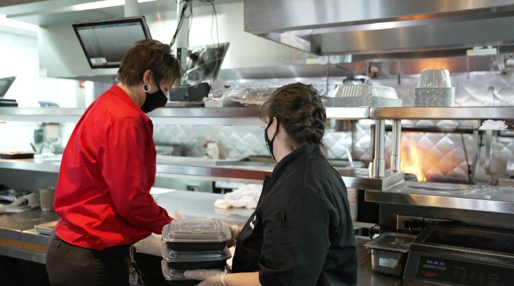 On the Border Catering Captain Carolyn McNeil (right) was one of eight West Michigan employees honored with the 2020 West Michigan Works! Beverly A. Drake Essential Service Award.
