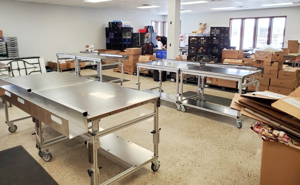 “That location only had folding tables to assemble (Sack Suppers),” Kimble says. “You couldn’t move product in and out of the space in a way that was ergonomic — things were sliding all over the place.”