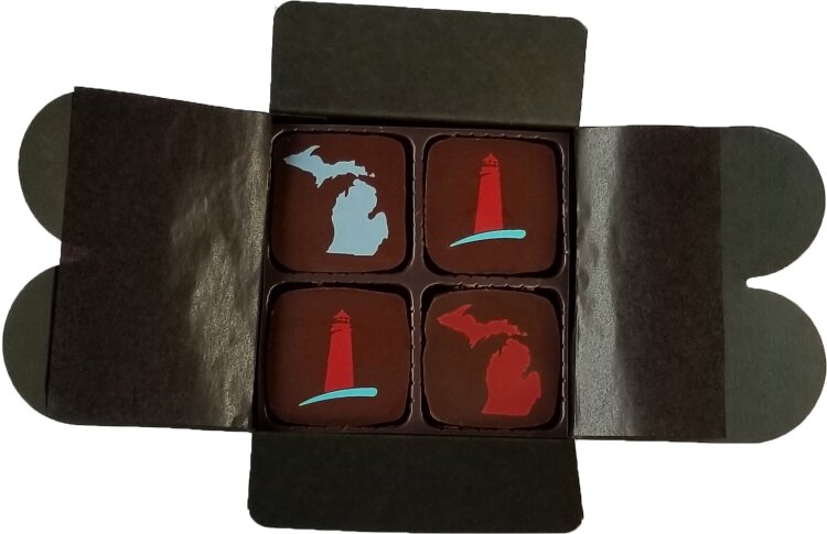 Patricia’s Chocolates in downtown Grand Haven created a box of Michigan-themed chocolates, which includes a booklet with a “flavor map” that describes the flavors inside.
