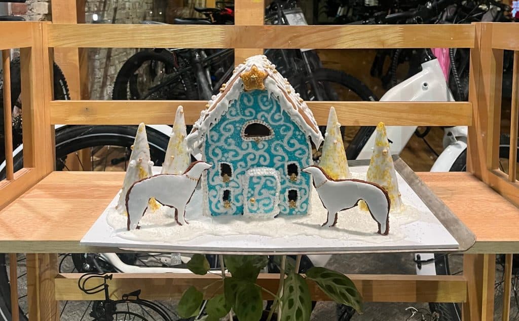 “We decorated some sugar cookies made with a borzoi cookie cutter at first, but thought that these wouldn’t hold up well,” she says, adding, “We ate the cookies. We couldn’t let them go to waste.”