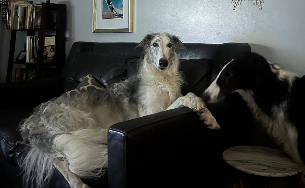 “I have had borzois for over 22 years, and I can’t imagine my home without at least one or two of these wonderful dogs,” says Letcher, who currently has two dogs, Mochi and Nimbus. Nimbus is a certified pet therapy dog that helps at Holland Hospital, the Ottawa County Fillmore Complex, and Appledorn.
