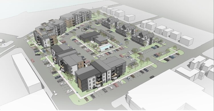 Specifics surrounding the 148,341-square-foot development include constructing 124 rental apartments, ranging from studio to three-bedroom units; nine owner-occupied townhome/condominiums along Second Street; four apartment buildings; and an amenity building with a conference room and fitness center, a gathering area, a kitchen, and terrace.