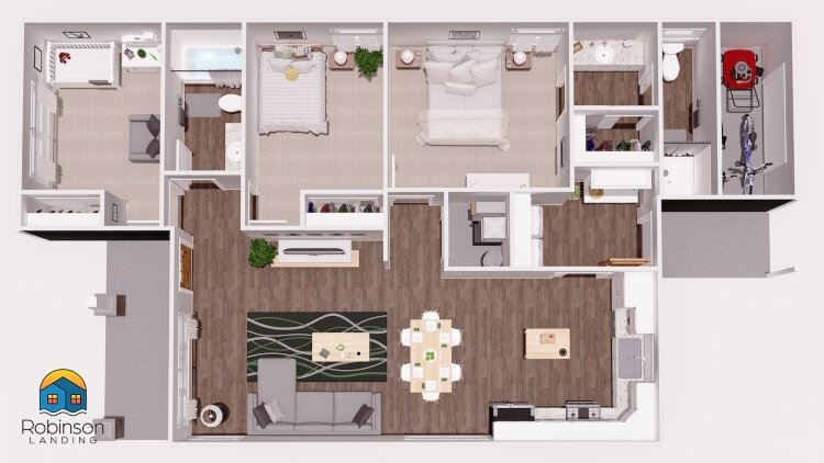 Homes in the CLT program are priced at $139,900 for a two-bedroom, one-bathroom home; $159,900 for a three-bedroom, two-bathroom home; and $179,900 for a three-bedroom, two-and-a-half-bathroom two-story home. (More detailed information about the homes offered and CLT program can be found at robinsonlandingmi.com.)