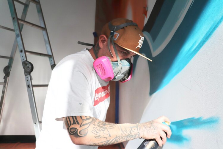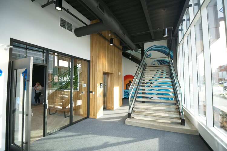 Lakeshore Advantage commissioned muralist Chris Garcia to decorate the interior of their new building, the Next Center.