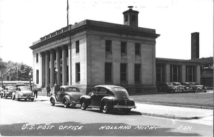 Historical photo of exterior of Holland post office’s exterior. (Holland Museum)