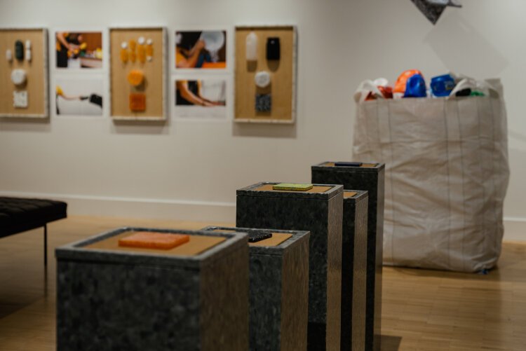 The duo’s work is currently being showcased at Kendall College of Art and Design’s “Fragments to Form” exhibit. It provides a behind-the-scenes look at their design process, from collecting plastic waste to creating fully realized products.