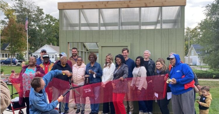 As a collaborative project with KCAD Urban Collaborative Studio, AARP and Dwelling Place of Grand Rapids, the addition of the greenhouse enhanced the 16 raised beds that seniors have been using for more than a decade to grow flowers, herbs, and vegetables.