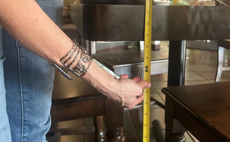 Disability Network Southwest Michigan’s Kelly Linton, an ADA specialist and systems advocate working with Wheel the World, takes measurements.
