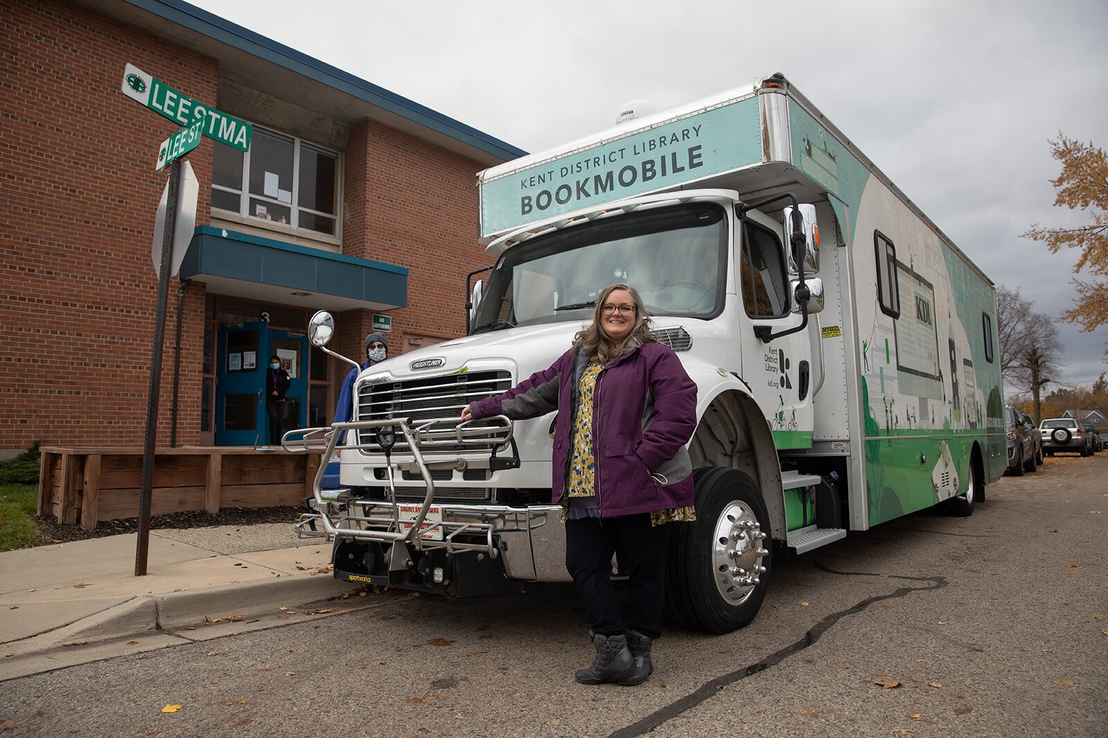 Kent District Library (KDL) serves an entirely diverse, large population with branches scattered all over the region. With that large population comes potential barriers, both in rural and urban areas. Joyanne Huston-Swanson, KDL Bookmobile operator and community engagement employee, says KDL’s partnerships with community organizations are in place to help break down barriers that vulnerable and underserved community members may experience when attempting to access resources.
