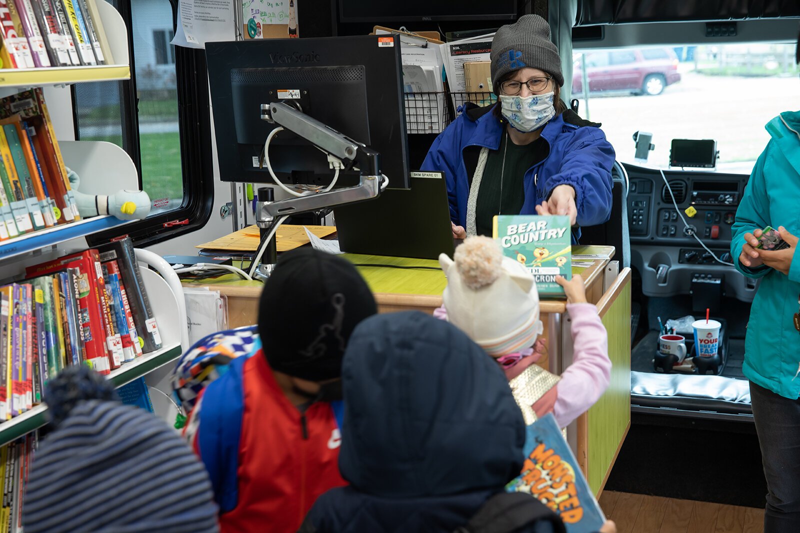 Last year, the Bookmobile partnered with Feeding America West Michigan, and visited their mobile pantry sites. “We attended seven or eight a month, and just matched those clients who are waiting to pick up their food boxes with resources that the Library has, and different programs and initiatives that we’re highlighting. We’re also giving out free bundles of Little Free Library books if they have an interest in them.”