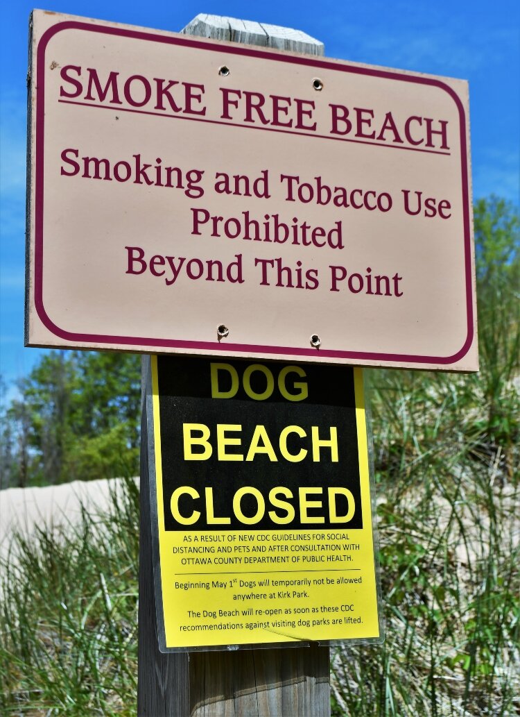 Some parking areas inside Holland State Park and Grand Haven State Park are closed as a way to halt the viral pandemic by limiting crowds on the beaches.