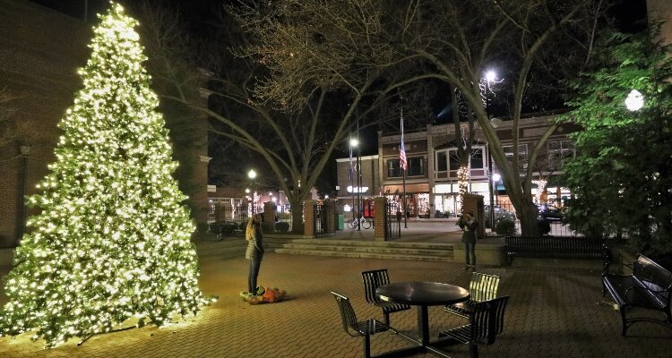 Visitors can follow the glow around the corner to the shops on Culver Street, a walk leading to Coghlin Park and an 80-foot Christmas tree tower. Used as a cellphone tower before its transformation, the star-topped tree tower glimmers over the business district with the radiance from 1,248 bulbs attached to 24 strands.