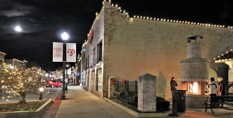 In Zeeland, the light-covered trees along Main Avenue, the downtown’s main street, give off the same dazzling effect. At downtown’s Heritage Square, a flickering fireplace flame and a decorated Christmas tree in Splash Pad Park add to the holiday glimmer.