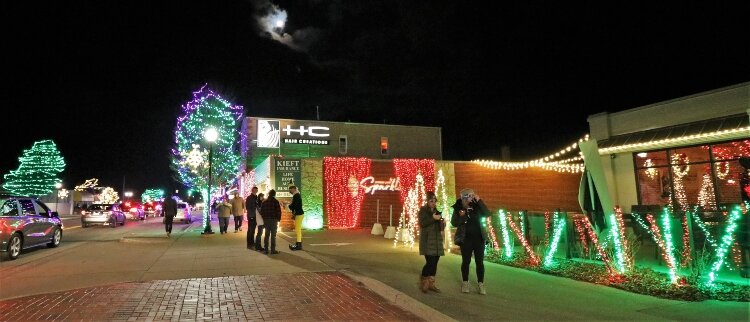 Lopez said a private company was contracted to install lights in the trees lining Savidge Street. But a volunteer committee of sponsors and organizers spent about six weeks wrapping the storefronts in colorful lights.