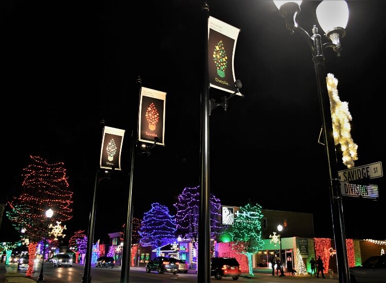Branded as the Spring Lake Sparkle Festival, more than 120,000 multicolored lights decorate the trees and drape the storefronts along Savidge Street — the downtown’s main thoroughfare — between Division and Buchanan streets.