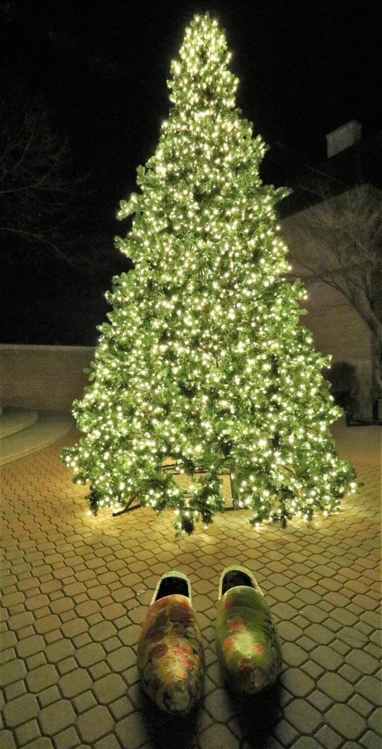 In Holland, the trunks of trees lining Eighth Street, the downtown’s main access, are decked out in holiday lights. In addition, the tree trunks surrounding nearby Centennial Park are also shining brightly.