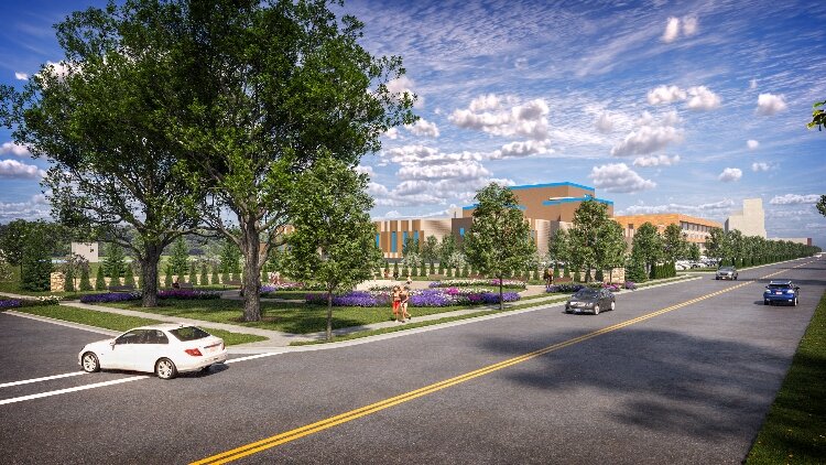 Rendering highlights enhanced landscaping around Mead Johnson Nutrition’s planned Zeeland facility expansion.
