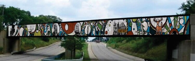 Previous works completed by the MCPAI since July 2018 include the sculptures Moxie and Mastodons on the Loose at the Lakeshore Museum Center, A City Built on Timber at Heritage Landing, Celebrating Muskegon at Pere Marquette Park, and the four murals on two Seaway Drive rail bridges comprising the “Muskegon Rails” Project.
