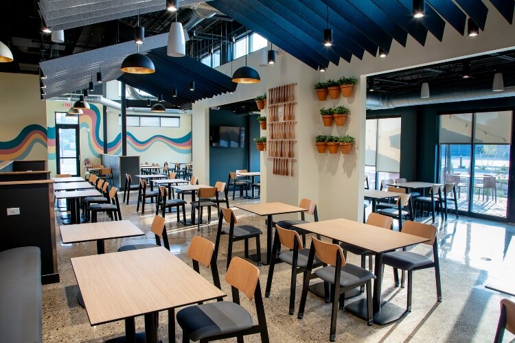 Reservations and online ordering will be available in the coming weeks. Guests can dine in the main restaurant Wednesday through Sunday from 7 a.m. to 2 p.m., while additional seating is located in the cafe space, which features a grab-and-go counter for coffee, tea and baked goods. The cafe is open Wednesday through Sunday from 7 a.m. until 3 p.m. Cafe orders will also be accepted at the drive-thru later this year.