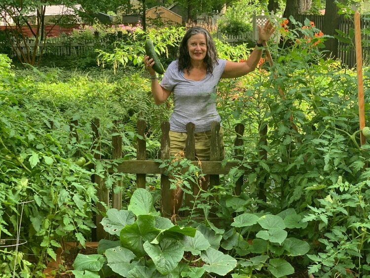 “All that came to a grinding halt in March, and I decided to get back to nature and reclaim my backyard,” she says. “I also really knew I needed something to nurture and to help mark time. Digging in the dirt has always soothed my soul. It is our basic nature to have our hands in the soil and grow food to nourish us and flowers to bring us beauty.”