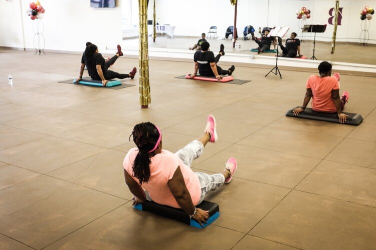 “I just wanted to create a safe space. There’s no intimidation here cause we’re all working toward the same goal. We welcome all fitness levels, all body types; not everybody looks the same,” says McCarty, pointing out the diversity in shapes, sizes, and ethnicities among her clients.