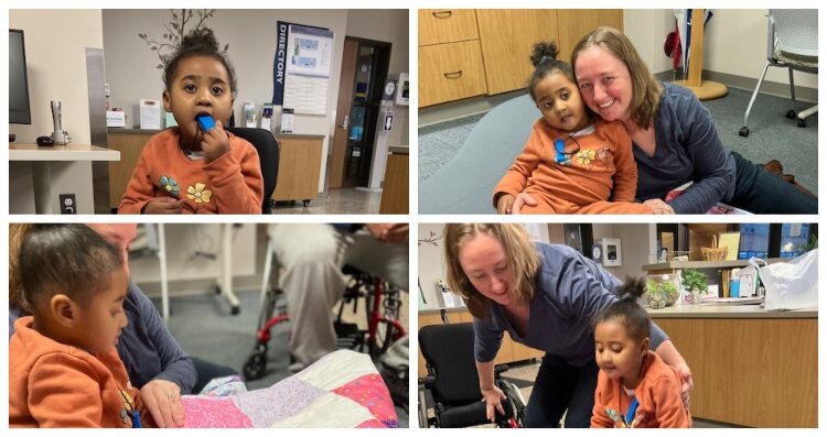 Sizemore’s hope was to give Island a quilt for her wheelchair so she can be warm and safe when she rides the bus to school or is in the car. If she wears a coat while being transported, the belts could be too loose, which would be dangerous if she were ever in an accident.