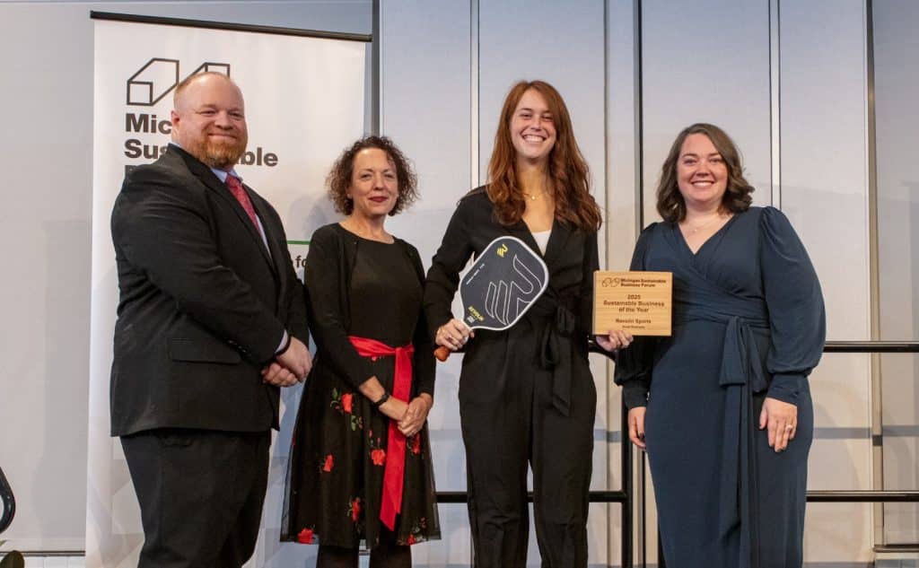 In December, the Michigan Sustainable Business Forum named his company, Revolin Sports, one of its inaugural Michigan Sustainable Business of the Year winners at the 12th Annual Triple Bottom Line Bash at Frederik Meijer Gardens & Sculpture Park in Grand Rapids.