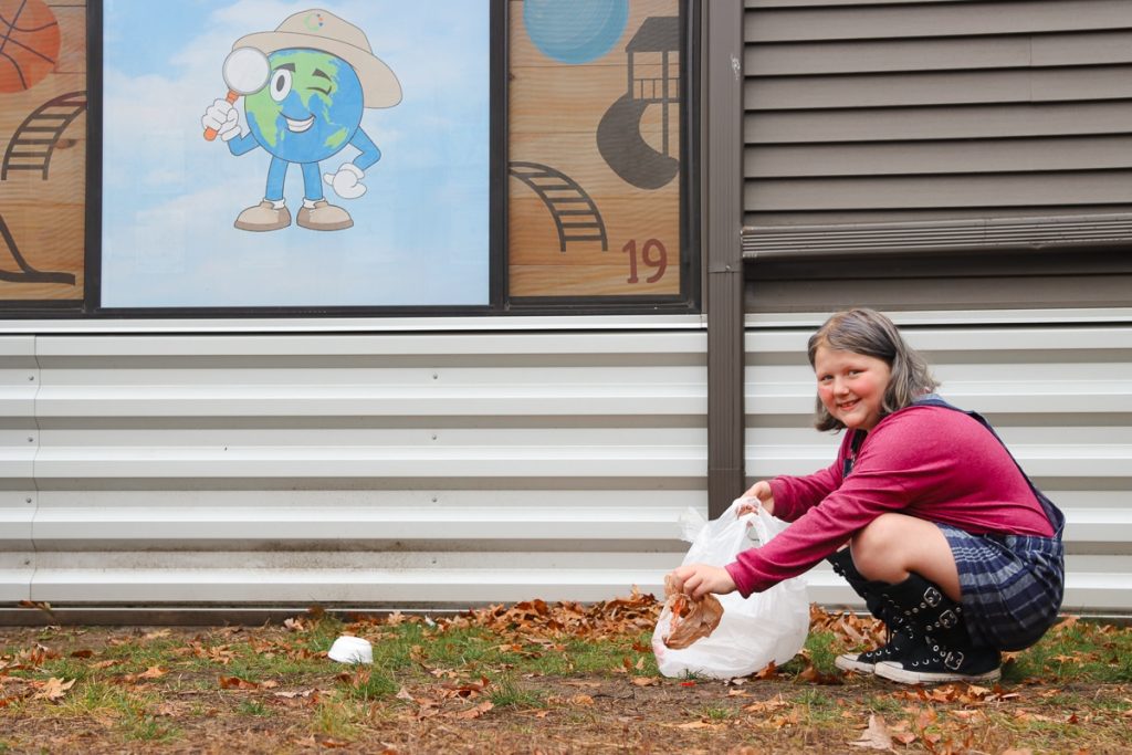 “Sometimes when we’re just sitting outside for a few minutes, I’ll spot a wrapper and encourage my friends to pick it up so our world can be a little cleaner,” Tice says.