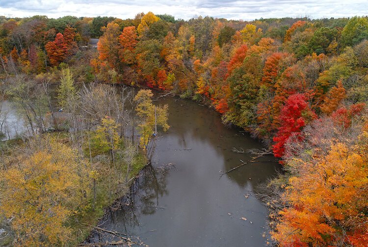Courtesy photo by Bruce Howe. – Aerial View of Kalamazoo River and Armintrout-Milbocker Nature Preserve.