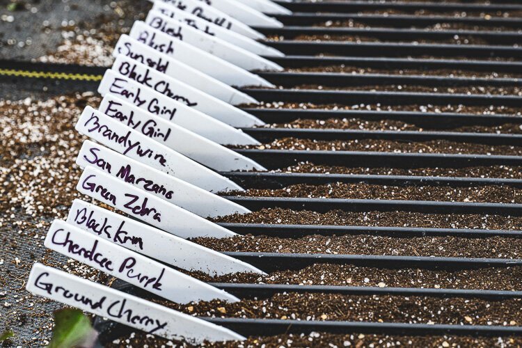 Cat Jardin y Kay Wilson clasifican plantas en The Farm At Trinity Health.