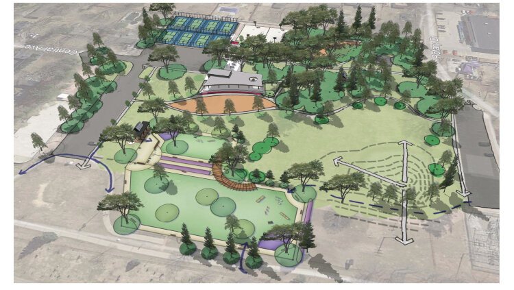 Renovation plans intend to make the park feel more cohesive. It will have a completely new pavilion and plaza area, a fire pit, a universal playground, another custom-built playground, an ADA-compliant restroom, and a sledding hill where the softball and baseball diamonds now sit, mostly unused.