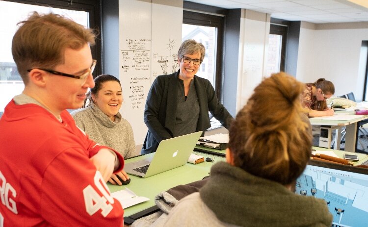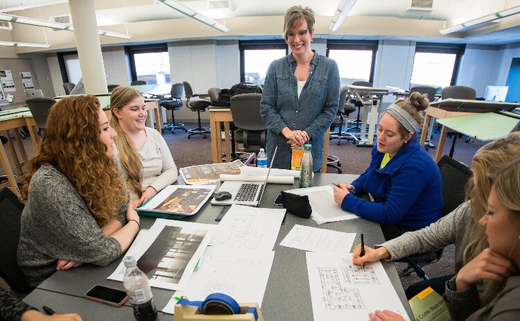 She met her husband during her final semester at KCAD and began working for Custer, the Steelcase dealership in West Michigan, after graduation. Over the next decade, McCrackin built a career designing showrooms around the country while staying closely tied to the West Michigan design scene. When an opportunity arose to teach part-time at Kendall, she embraced it and soon discovered her true passion.