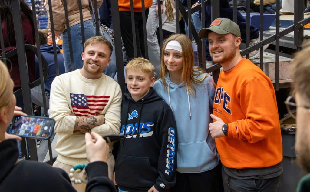 “These guys were wonderful humans and genuinely so interested in finding these small towns,” says Stephanie Schafer, Hope’s director of communications. “We reached out to them on their social media accounts after seeing them in the area, asking if they’d like to experience a college basketball game.