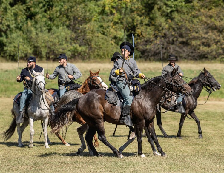 Cavalry skirmishes will join in the Battles of Gettysburg. Games and crafts for kids will be on the lawn. The Grey Barn Saloon will be open for cold beverages and tavern vittles and treats. Sword demonstrations will include lessons on swordsmanship, and an exhibit of antique military weaponry will be displayed.