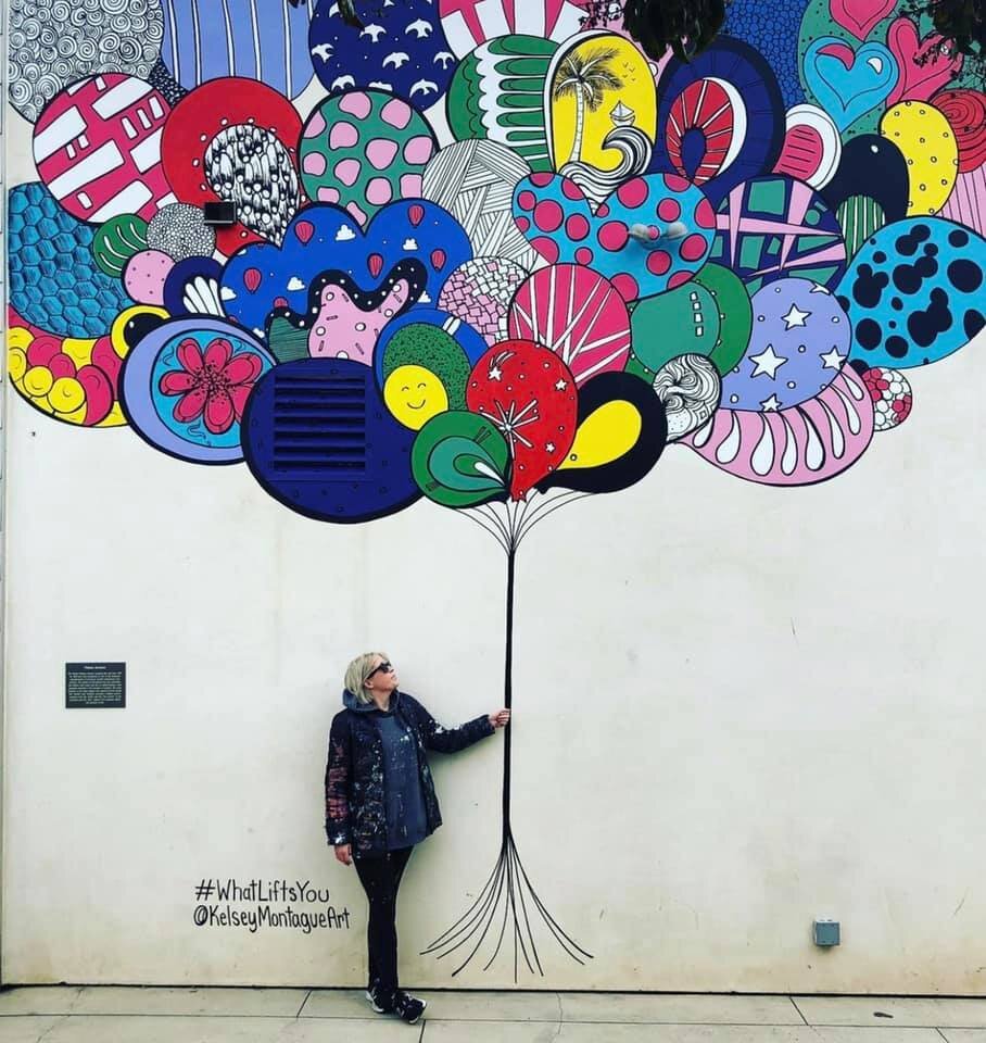 Having worked with Montague previously, Flanders knew she would be a great fit for this installation. “Kelsey Montague murals are of particular notoriety because they invite participants to become part of the art by ‘stepping into the art,’ taking a photo and sharing it on social media. Her images are light-hearted, feel-good and carry positive messaging with her motto #whatliftsyou,” Flanders says.